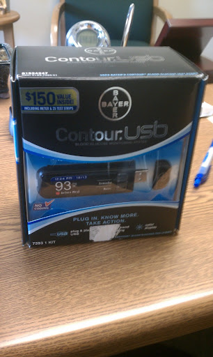 I wandered into the Bayer Contour USB about a year ago and have been using it since. Last month I was a Children With Diabetes’ Friends for Life Conference in Florida and while doing some swag shopping, I was given a coupon for $30 off a new Contour USB. I figured bonus, free meter and I know I like it. Plus now I can have a second meter and not have to drag it with me everywhere I went.