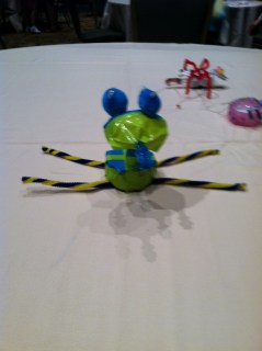 Wednesday, I woke up and had to meet with the people over at Tandem Diabetes, for a pump demo. I will talk more about this in a different post to give you my thoughts and comments. Following that I was waiting for Sara to pull herself together. I did some d-art instead with Lee Ann Thill. We were given art supplies based on pump bits and pieces, infusion sets, tape, glue, glitter. Awesome. So I made my d-art creature.