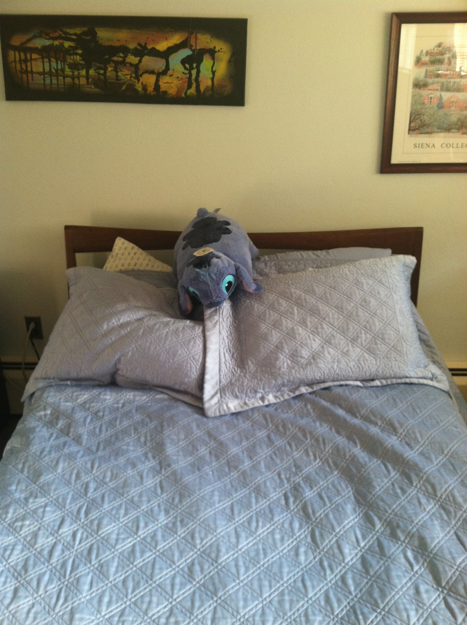 Anyway, back to my restless sleeping. I tend to conk out when I am tired. Just figure out a way to get comfortable on my bed in my nest of six pillows and the Stitch who starts on my bed, but never stays there. Usually at some point during the night, I throw 3/4’s of the pillows off my bed and if I can figure out where everything is in the morning it is a great thing for me. I blame the bed for my restlessness and may soon be saying goodbye to the thing I call a mattress for something better.