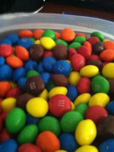 So, I had absolutely no clue that people eat M&Ms in color order. I keep Skittles around for my lows as I really don’t like them. M&Ms? – I’d bolus and eat them. 🙂