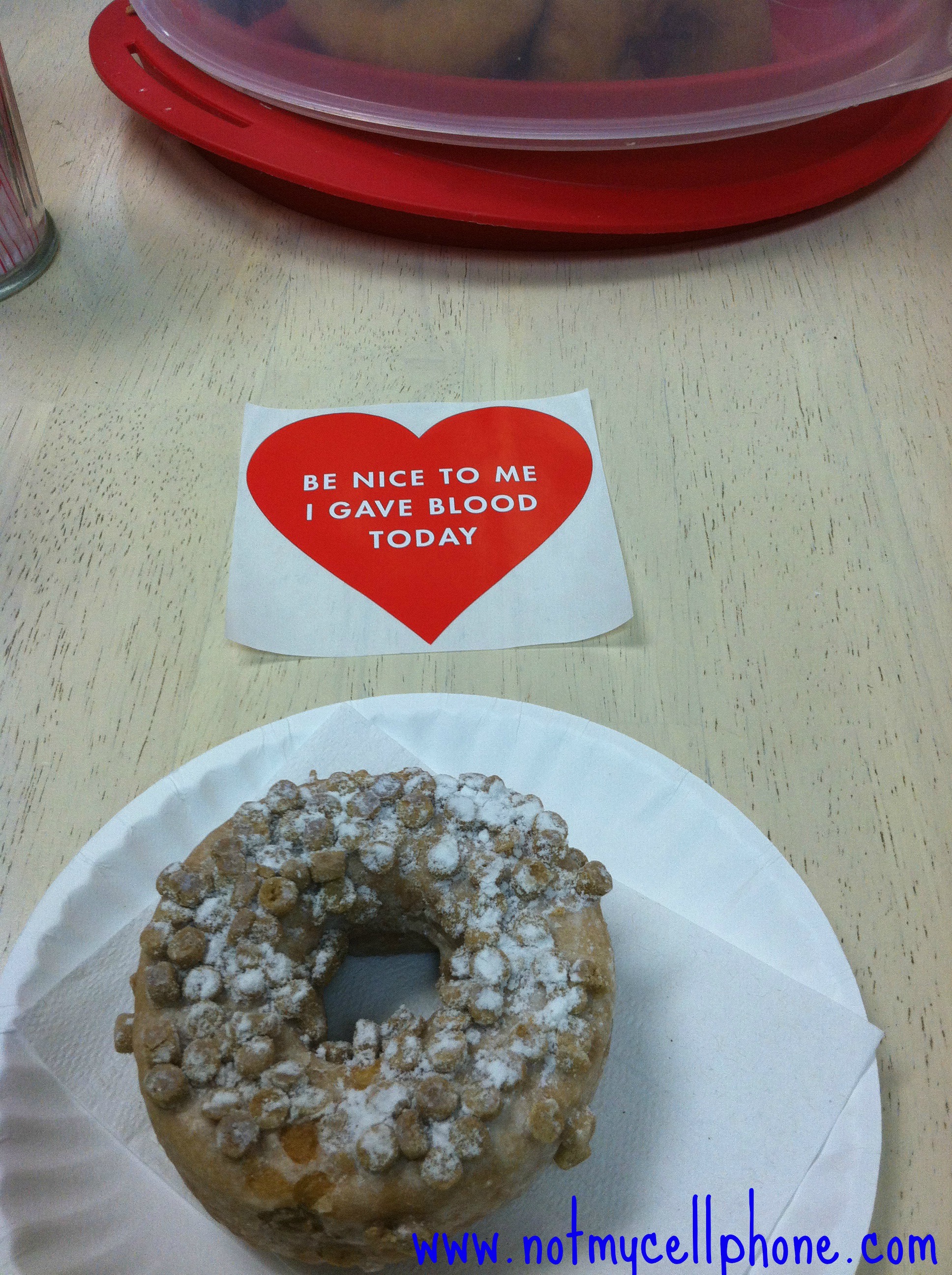 I woke up and went to the gym. Planning on this, I half bolused for my cereal figuring the workout would cover everything else. It worked pretty well. bloggy1There was a small crash a little later, but never sub 70. So in all that was great. My day was conquered. My next item on the list was that I was giving blood, another reason why I was trying really hard to keep everything stable.